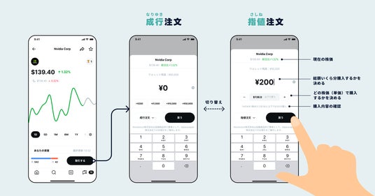 当サービスにおいては、これまでも約700の米国株やETFを日本円で200円から気軽に購入いただくことが可能でしたが、成行注文のみの受付であり、日本時間においては米国株市場の立ち合い時間が夜遅くなることから、指値での注文について顧客の皆様より多くのリクエストをいただいておりました。この度、200円からの注文受付はそのままに、指値注文についてもアプリにて簡単に行なっていただけるよう機能実装いたしました。200円での米国株取引かつ、指値注文に対応したケースは業界でも比較的新しい取り組みであり、これにより少額からアクティブな取引を行なっていただくことが可能です。