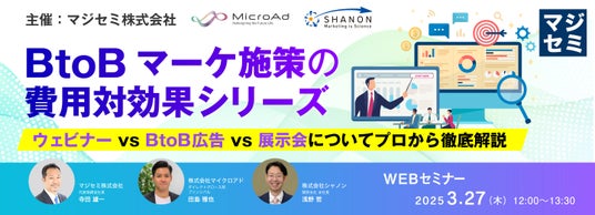 マジセミ株式会社は「BtoBマーケ施策の費用対効果シリーズ」というテーマのウェビナーを開催します。