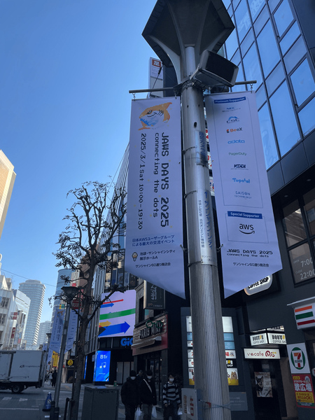 会場までの通りにはJAWS DAYS のストリートフラッグや巨大な看板が!