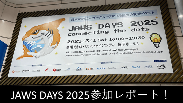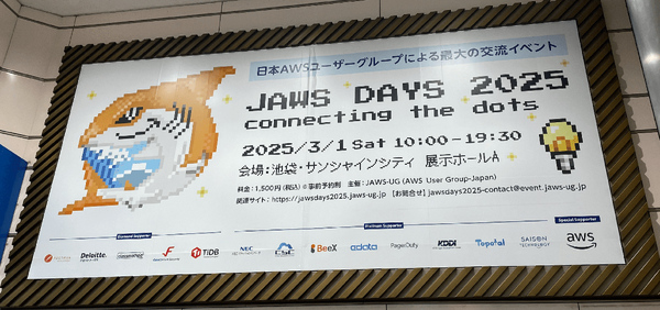 今回は3月1日に開催されたAWS のユーザーコミュニティ「JAWS-UG」による年次イベント「JAWS DAYS 2025」に企業サポーターとして参加してきましたので、そちらの様子を当日の写真多めでレポートいたします。