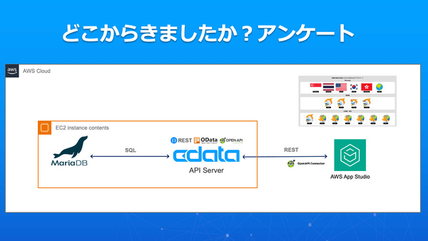 CData では今年のキーノートのテーマ「Next-Generation Software Development」にちなみ、生成AI を使ってアプリ開発ができるAWS App Studio で作成した「どこからきましたか?」アンケートを実施しました。