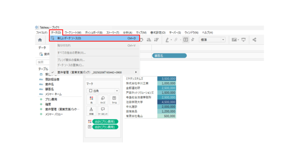 3.[データ]>[新しいデータソース]をクリックします。