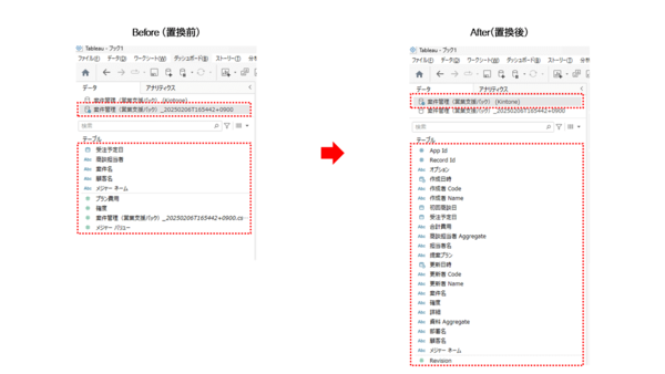 なお、今回はデータソースの置換前=CSVファイル、置換後=CData kintone Tableau Connectorを例にしておりますが、この組み合わせ以外でもデータソースの置換は可能です。