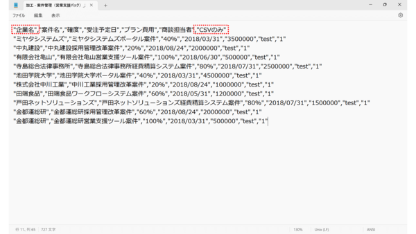 また、CSVファイルにしか存在しないデータはとりあえず削除してみますと、