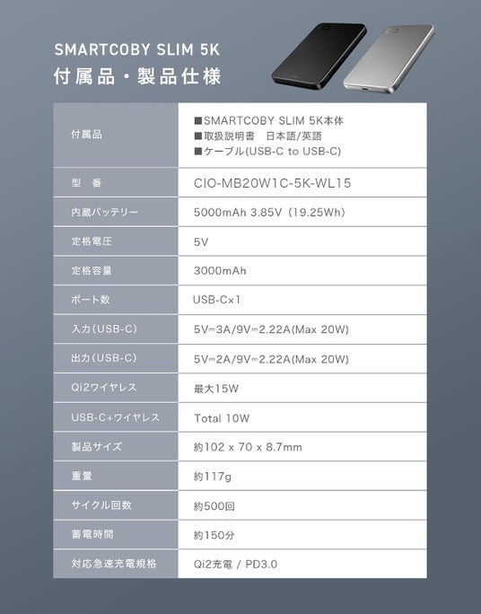 ・商品情報「SMARTCOBY SLIM 5K」(CIO-MB20W1C-5K-WL15-SL)
