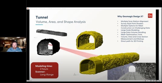 今回は、採掘中のトンネル内部をスキャン、そこからメッシュ化し、内部の体積や断面積などを解析計算する内容です。日頃あまり目にすることが無い分野で、非常に興味深い内容となっております。