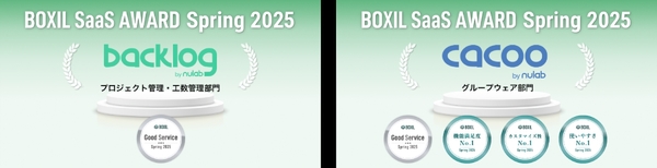 Backlog・Cacooは「BOXIL SaaS AWARD Spring 2025」も受賞