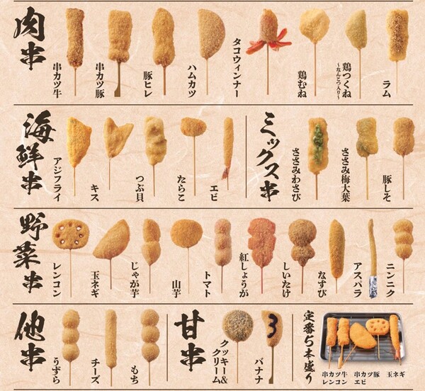 ・対象の串カツ以外の串カツ、一品メニューは通常料金