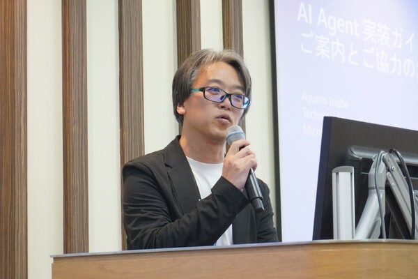 日本マイクロソフトのテクニカルスペシャリストである稲葉歩氏は、「企業の姿勢が『何か役に立てばよいのでとりあえずAIを使いたい』から『ビジネスへ貢献できるシーンや効果を明確にしながらAIを使わなければならない』に変わってきている状況に応えたい」と説明する。