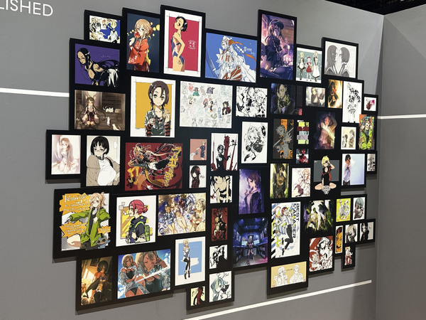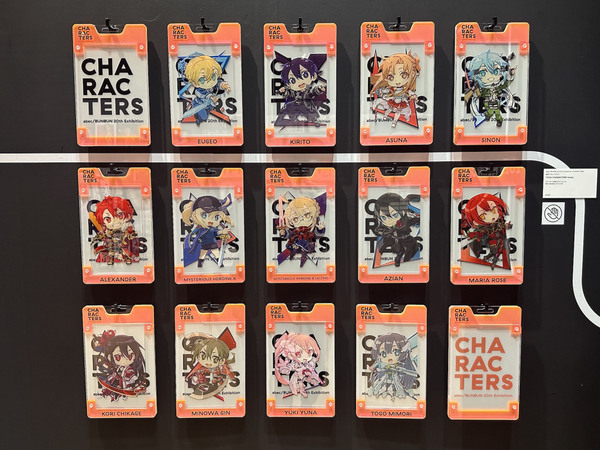 ここがグランドフィナーレ! 薔薇のマリア、結城友奈は勇者である、ソードアート・オンライン、キービジュアルのイラストが透明感と奥行き感を表現する「アクリルUV印刷」で展示されています。