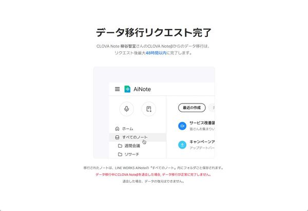 2025年7月末に完全終了する予定のCLOVA Noteβのデータを正式版「LINE WORKS AiNote」に引き継ぐ方法