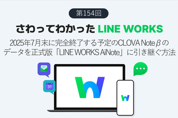 仕事で使えるビジネス版LINEである「LINE WORKS」の連載では、アカウント作成の基本からビジネスシーンでの活用術、便利なTipsなどを紹介していく予定。第154回は、CLOVA NoteのデータをLINE WORKS AiNoteに引き継ぐ方法について紹介する。