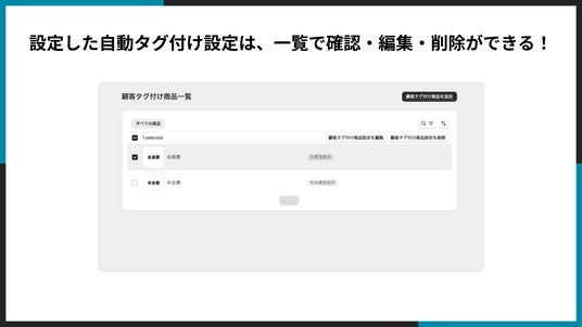 ■ 特定の商品を購入すると自動で顧客にタグが付与される!
