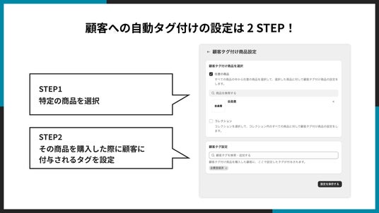 ■ 顧客への自動タグ付けの設定は 2 STEP!