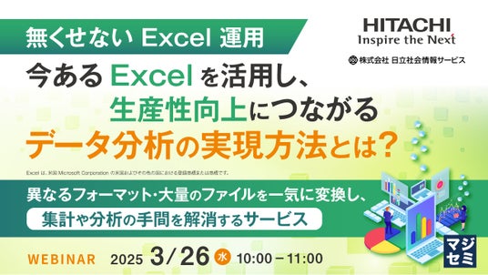 マジセミ株式会社は「無くせない Excel 運用、今ある Excel を活用し、生産性向上につながるデータ分析の実現方法とは?」というテーマのウェビナーを開催します。
