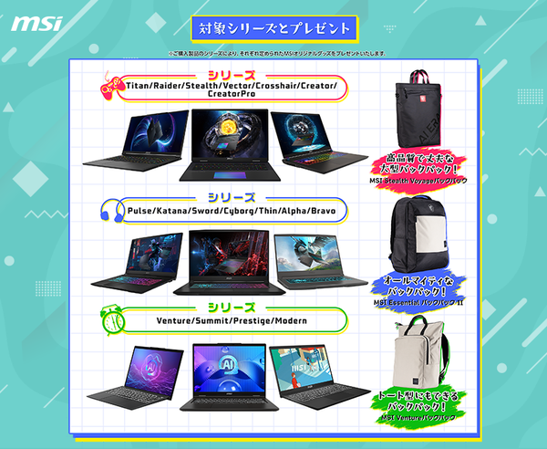 MSI新生活応援キャンペーン2025開始!ノートPC購入でオリジナルバッグがもらえる