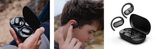 「JBUDS OPEN SPORT AIR CONDUCTION WIRELESS EARBUDS」(以下、JBuds Open Sport)は、周囲の音が聞こえる安全なオープンイヤーに、快適で滑りにくいイヤーフック型を採用したワイヤレスイヤホンです。