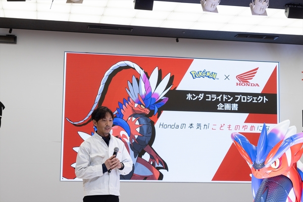 Hondaはポケモン社監修のもと、ゲーム「ポケットモンスタースカーレット」の中で登場する「コライドン」を元にしたミライモビリティ「ホンダコライドンプロジェクト」を始動。3月7~9日までの3日間、Hondaウェルカムプラザ青山で展示中だ。