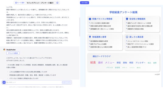 学校教育機関向けの生成AIサービスを提供する、スタディポケット株式会社(本社:東京都千代田区、代表取締役:鶴田 浩之)は、教職員が教材プリントや小テストを図解生成できる AI新機能「マジックプリント」を、2025年3月7日に公開いたしました。「スタディポケット for TEACHER」の一部学校から順次提供を開始し、令和7年度中に、すべての教員向けライセンスに標準搭載を予定しています。