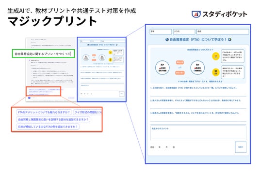 スタディポケット、AIで教材プリントやスライド作成を支援する新機能「マジックプリント」を公開