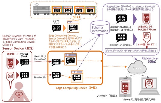 (図1)ウェアラブルセンサ信号コンテナフォーマット技術 概念図
