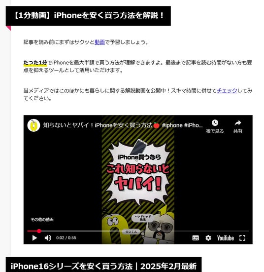【ゼロメディア】通信カテゴリの記事内に1分解説動画を設置