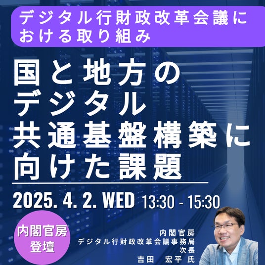 JPI(日本計画研究所)は、内閣官房 デジタル行財政改革会議事務局 次長 吉田 宏平 氏を招聘し、国と地方のデジタル共通基盤構築に向けた取り組み、 課題と今後の政策の方向性について詳説いただくセミナーを開催します。