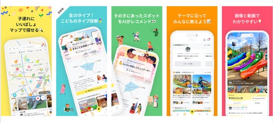 遊び場、飲食店、トイレ、授乳室、習い事、保育園などがすぐにわかる他、UGC×位置情報でみんなでマップを作り上げていく世界観を実現。子育てに寄り添ったテーマごとに地図で見られるテーママップや、こどものタイプ診断結果をもとにAIがおすすめの場所をレコメンドする機能が新登場し、子育て世帯に寄り添ったスポットの提案を行う。