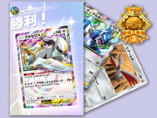 今回ご紹介するのは、私、ムラリンの5連勝達成デッキ。アルセウスex&ディアルガexデッキです。エネは鋼タイプのみ。