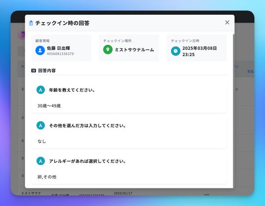 本機能は、多くのユーザー様からいただいたフィードバックをもとに開発されました。チェックイン時の情報収集ニーズは以前から高く、この機能リリースによって、より効率的な会員管理と顧客理解が実現します。