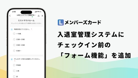 合同会社Oblivion(所在地:東京都千代田区、代表取締役:佐藤日出輝)が提供するLINEデジタル会員証システム『Lメンバーズカード』は、入退室管理機能において、新たに「チェックイン前フォーム機能」を追加したことをお知らせいたします。本機能により、QRコード読み取り後のチェックイン完了前に、会員から必要な情報を収集できるようになります。