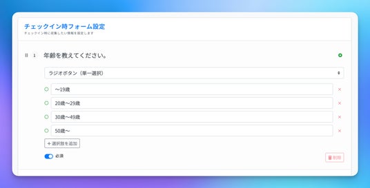 直感的に操作できるユーザーインターフェースを採用し、会員の入力負担を最小限に抑えたフォーム設計を実現。必要最小限の質問項目に絞ることで、チェックイン時のストレスフリーな入力体験を提供します。