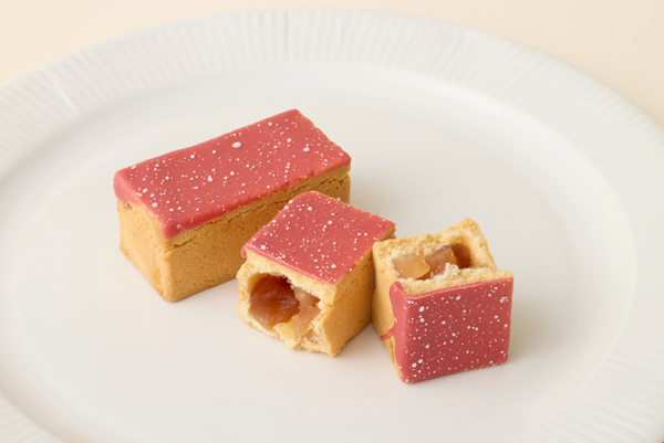 甘酸っぱいいちごと爽やかなりんごの絶妙なバランスが楽しめる一品です。青森県産紅玉りんごのフィリングを閉じ込めたケーキを、春らしいピンク色の苺チョコレートでコーティング。ひと口食べるとフルーティーな味わいが広がります。