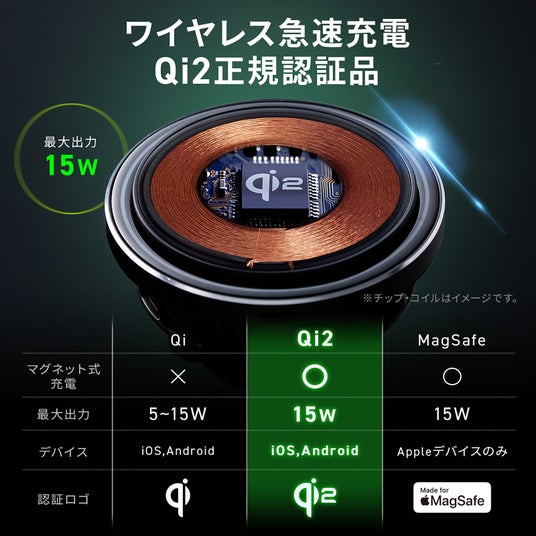 ●Qi2正規認証!最大15Wのパワフル充電を実現