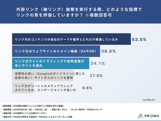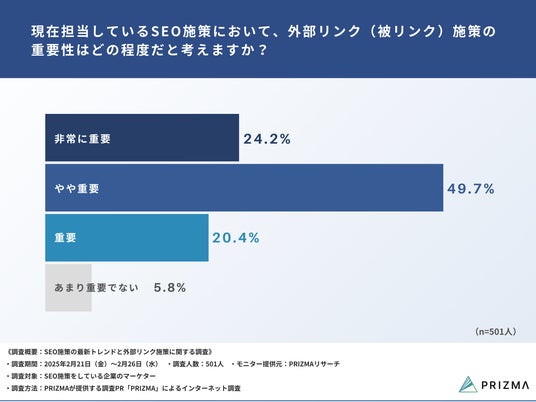 そこで今回、株式会社PRIZMA(https://www.prizma-link.com/press)は、SEO施策をしている企業のマーケターを対象に、「SEO施策の最新トレンドと外部リンク施策に関する調査」を実施しました。