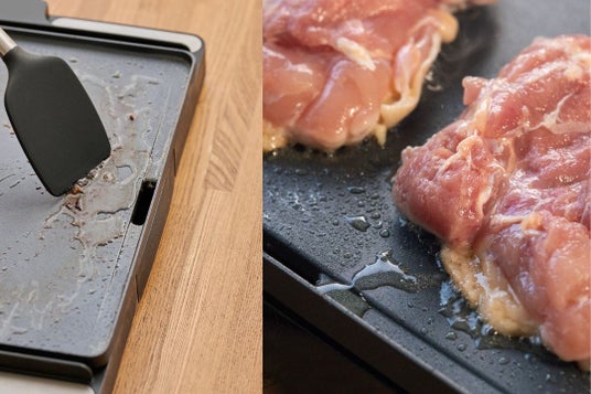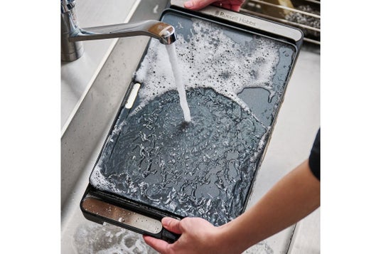 プレートと一体型なので、熱伝導率が高くスイッチを入れてから約2分でプレートの温度は約200℃以上に達します。またIPX6の防水仕様で本体を丸ごと水洗いできます。コンパクトで薄型なので洗浄しやすく、PTFEコーティングのプレートで油汚れも落としやすいので、衛生的に使い続けることができます。