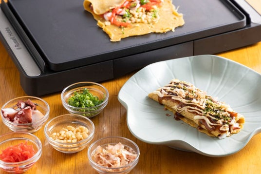 油排出口が端にあることによってお好み焼きやパンケーキが2枚同時に焼けるなど、プレート面積を最大限に活かすことができます。