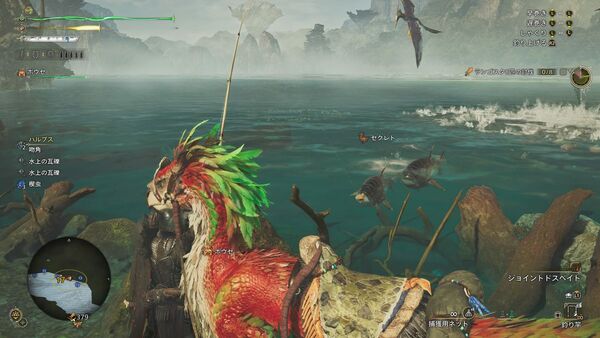 まず準備として、スキル「ハンター生活」を発動させておこう。釣りの場所は「緋の森」の豊穣期、エリア17の大湖畔がオススメ。