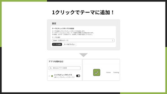 Shopifyアプリである「シンプル利用規約チェックボックス|商品・カートページで使える」を使うと、1 クリックで利用規約チェックボックスを Shopify ストアに導入できます。