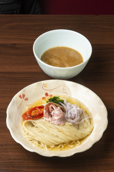 今回のメイン食材となるのが「みやじ豚」。湘南を代表するブランド豚で、そのガラをガッツリと炊き出してつけ汁のスープにする。濃厚ながら上品な味わいのスープになっている。また「みやじ豚」の肉はチャーシューに。低温調理した豚の旨味が感じられる一品だ。