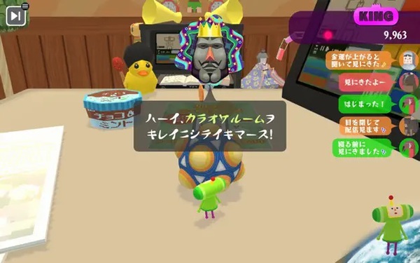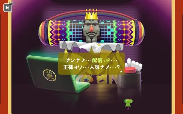 本作でもそのゲーム性やさまざまなジャンルを融合したサウンドトラックは健在。プレイヤーは塊を転がして大きな星を作り、王様の「ライブ配信」を盛り上げる。