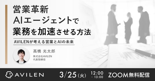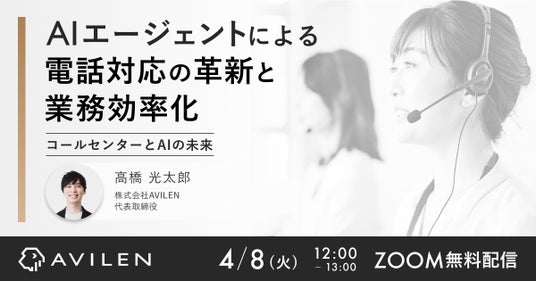 株式会社AVILEN(本社:東京都中央区、代表取締役:高橋 光太郎)は、企業の業務効率化と革新を実現する「AIエージェント」の有用性を、全3回のウェビナーで分かりやすく解説します。各回は、営業・コールセンター・バックオフィスの各テーマに特化し、実際の導入事例も交えつつ具体的な効果と活用法をお伝えします。