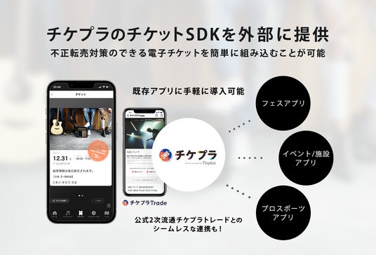 「チケプラSDK」は、既存のアプリに手軽に簡単に組み込むことができ、電子チケットの発券機能はもちろん、同行者にチケットを分配する機能、チケットIDに紐づいたユーザーへのコミュニケーション機能、アプリに合わせたチケットデザインなどを可能としています。また、深刻化する不正転売対策を講じることも可能です。既存のアプリに実装可能なため、様々なサービスのアプリに実装を進めてまいります。