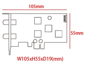 この製品はコンパクトな設計が特徴で、基盤の高さはわずか55mm。ロープロファイル規格に対応した専用の取付金具も標準付属しているため、薄型パソコンケースにも容易に取り付けることができます。