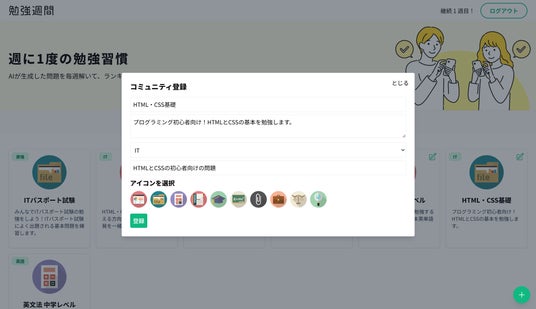 作成したコミュニティは公開され、誰でも自由に参加できます。またコミュニティ作成時には、自分で問題作成のプロンプト(指示文)を設定でき、好きなジャンルの問題を自由に出題できます。