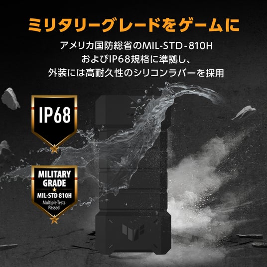 エンクロージャーはアメリカ国防総省のMIL-STD-810HおよびIP68規格に準拠し、外装には高耐久性のシリコンラバーを採用。衝撃に強く安心して使用できます。