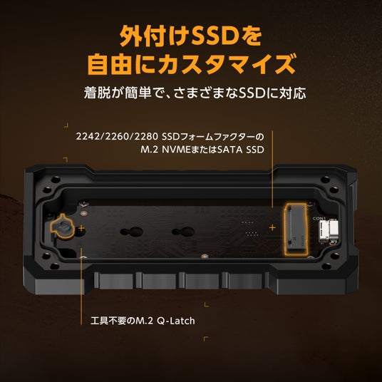 NVMe接続、SATA接続両方のM.2 SSDをサポートします、また大きさも2242/2260/2280 に対応し取り付けには工具不要のM.2 Q-Latchを採用しています。