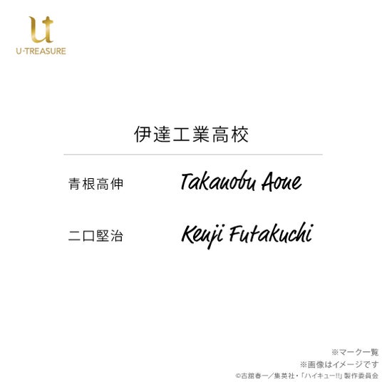 内側には、「伊達工業高校」の青根高伸、二口堅治の2種類から、あなたが選んだいずれかのキャラクターの名前を刻印。