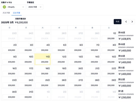Amazonや楽天市場のセール期間などは、予算を多めに見積ることで、的確な売上マネジメントを可能にします。