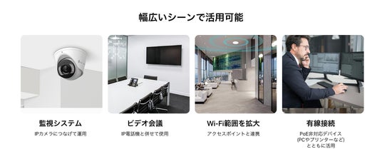 *1:PoEの供給電力はラボでのテスト結果に基づきます。実際のPoE供給電力はクライアント端末や利用環境に応じて異なります。